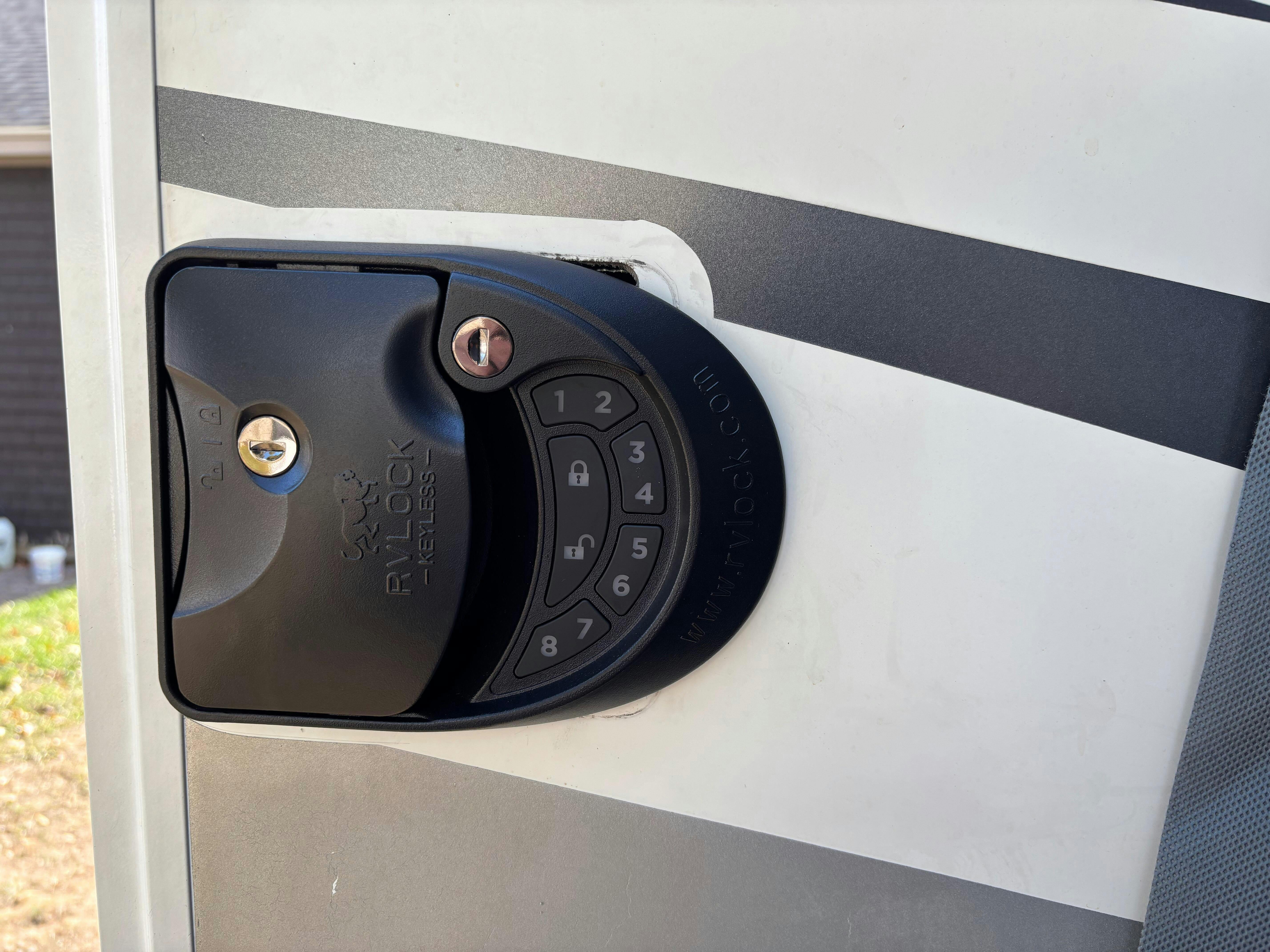 The exterior handle features an ergonomic grip that gives more leverage than a traditional handle. The Charter has a weatherproof silicone keypad with backlit, individual buttons, so you can easily enter your personalized code, even at night. The Charter's electronics are designed to operate only the deadbolt—not the paddle. For added accessibility, the Charter comes with two 4-Button FOBs. Control multiple doors and compartments with a single fob - only offered by RVLock.
