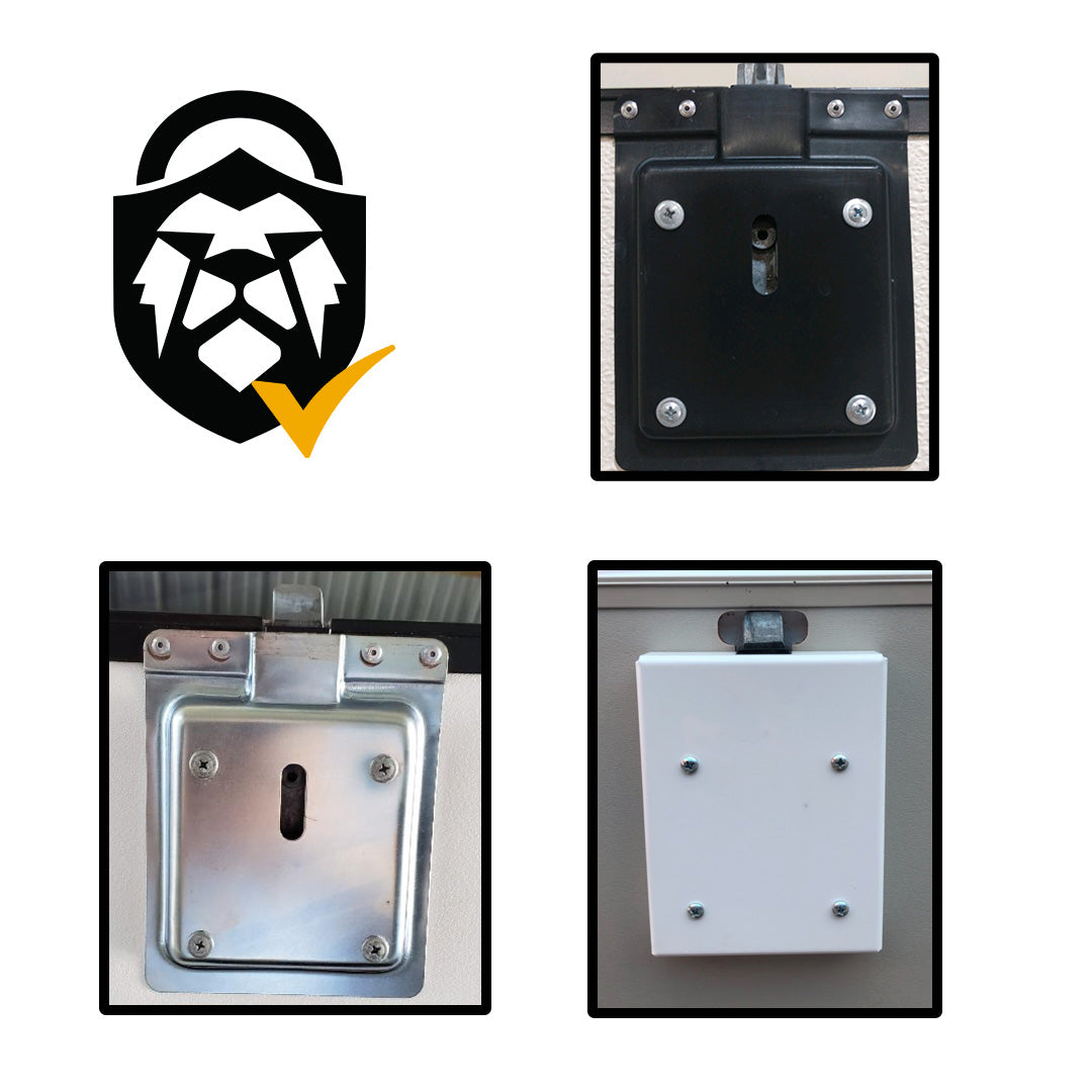 Due to details like screw placement, latch systems, and interior backplate thickness, these sample images of back plates are not compatible with the RVLock Keyless upgrade.