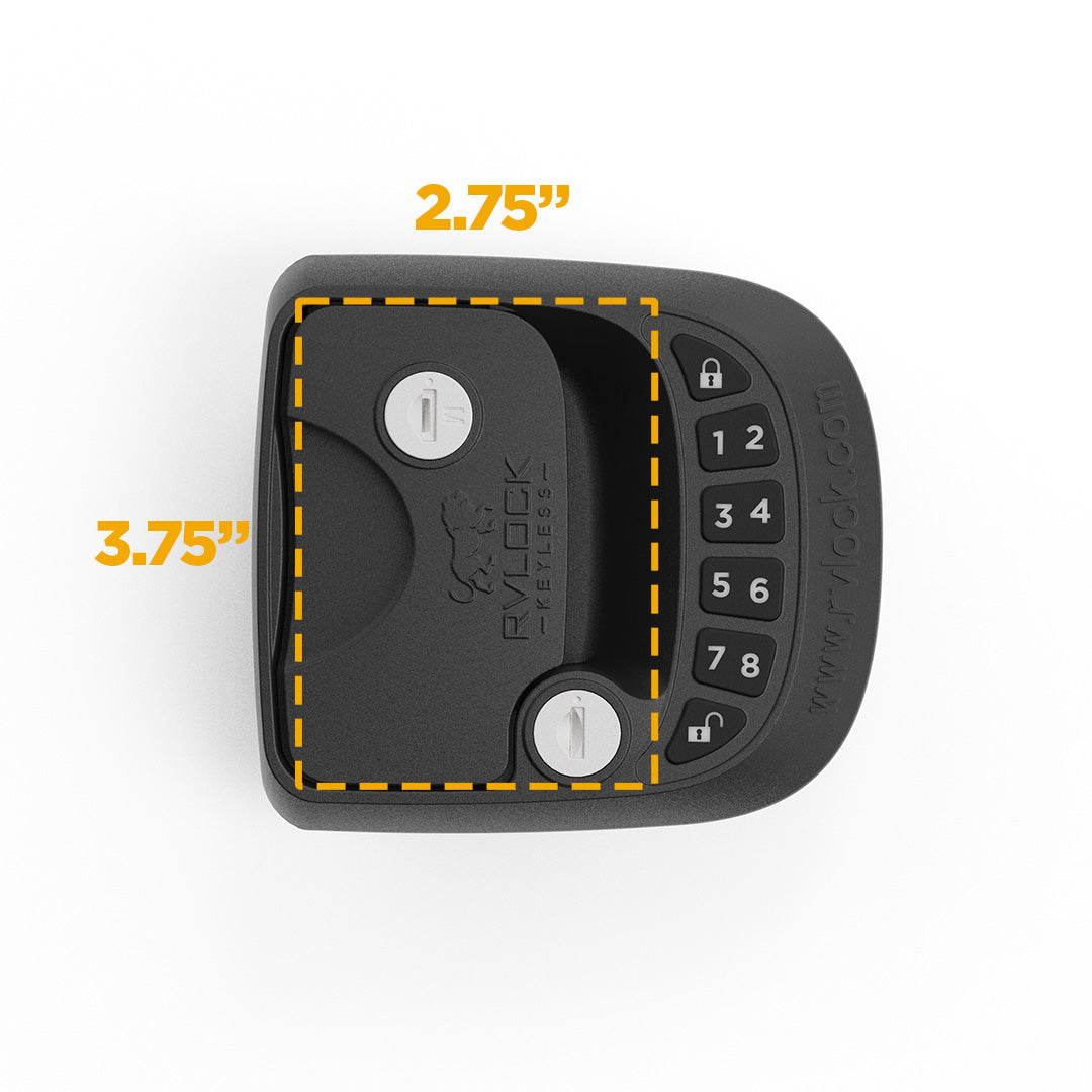 The RVLock Compact Keyless Handle designed to fit most towable trailers with doors 1.5" thick. This durable keyless handle is 25% lighter than the RVLock V4, while offering the same expansive compatibility. For those with a window in their door that extends below their handle, the Compact is the only RVLock keyless entry handle that will install properly.