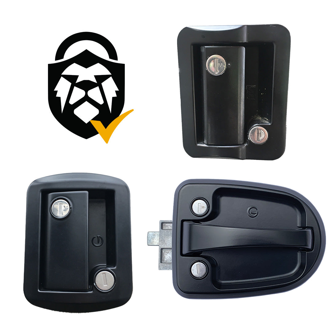 Designed for towable trailers with 1.5" thick doors. Upgrade your RV security with the RVLock Trek Keyless Handle, featuring a dual lock cylinder for simultaneous deadbolt and latch locking. The 10-digit keypad and QuickLock feature make entry effortless, while the LED backlit keypad and internal paddle light ensure visibility at night. Never worry about battery life with USB-C rapid lithium charging, providing 3-5 months of use on a single charge and full recharge in just 30-60 minutes. The True Grip Paddle design offers a firm door closure, and the built-in panic button adds an extra layer of security. Enjoy the convenience of press-to-lock functionality and adjustable volume control, with an emergency USB-C charging port ensuring you’re never locked out. Designed for towable trailers and replaces the same units as the Compact and V4.