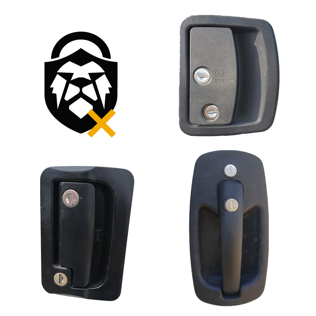The Trek replaces most OEM handles on towables. The following pictures are examples of handles we replace. Other factors may determine compatibility like deadbolt placement, distance from window (if applicable), and cut-out size.