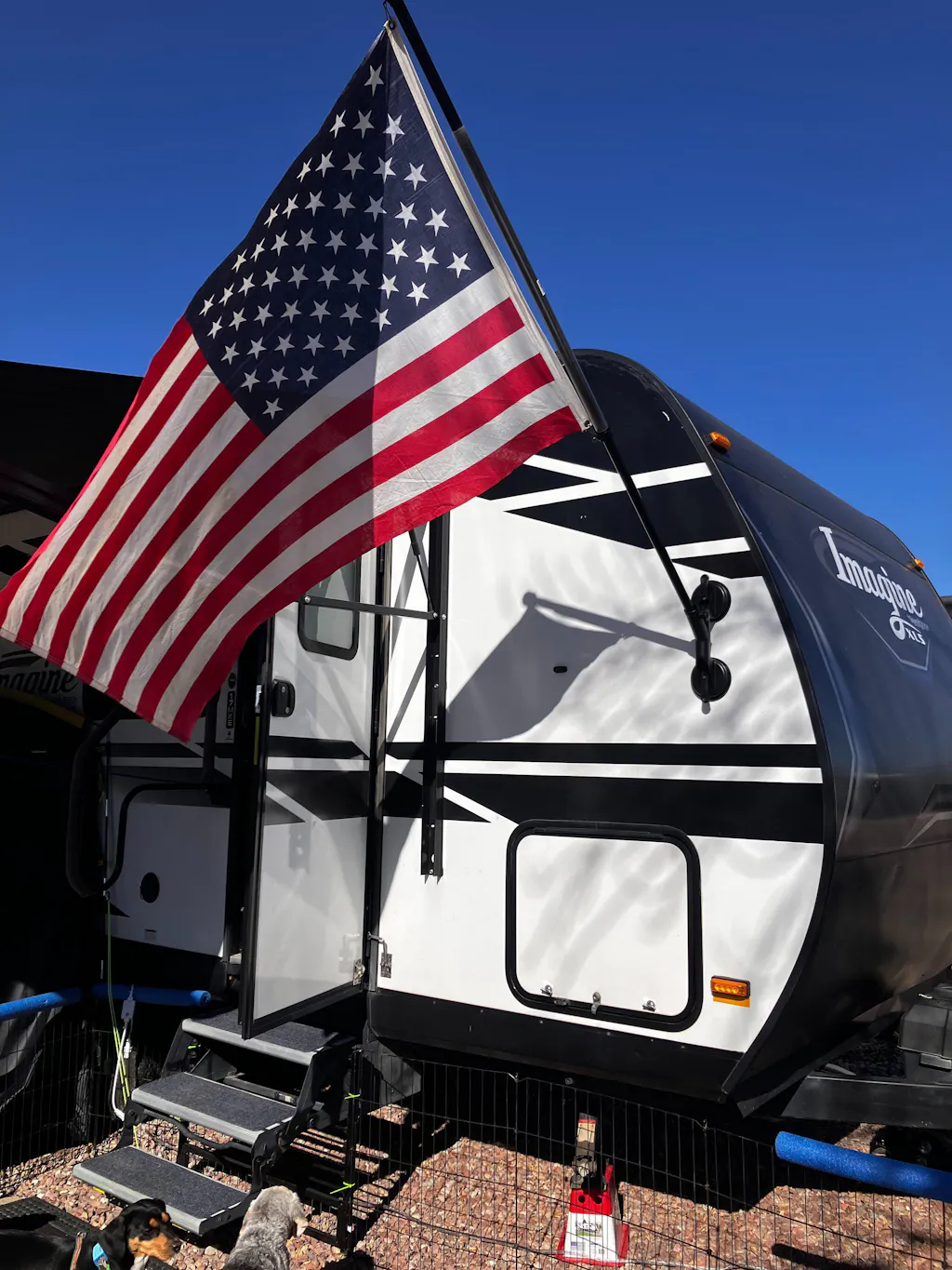 The ANKR Quick Flag Mount is the ultimate solution for proudly displaying your flag on the go. Featuring an innovative quick-release suction cup system, it allows you to effortlessly mount a standard flagpole with an ideal diameter of 1.25" to the side of your RV, window of your truck, or any other flat surface. Designed for convenience and versatility, the ANKR installs in seconds—no tools required. It is ideal for use on a glass window and has been tested to hold 5 lbs on a 6 ft pole; however, stability may vary depending on leverage.