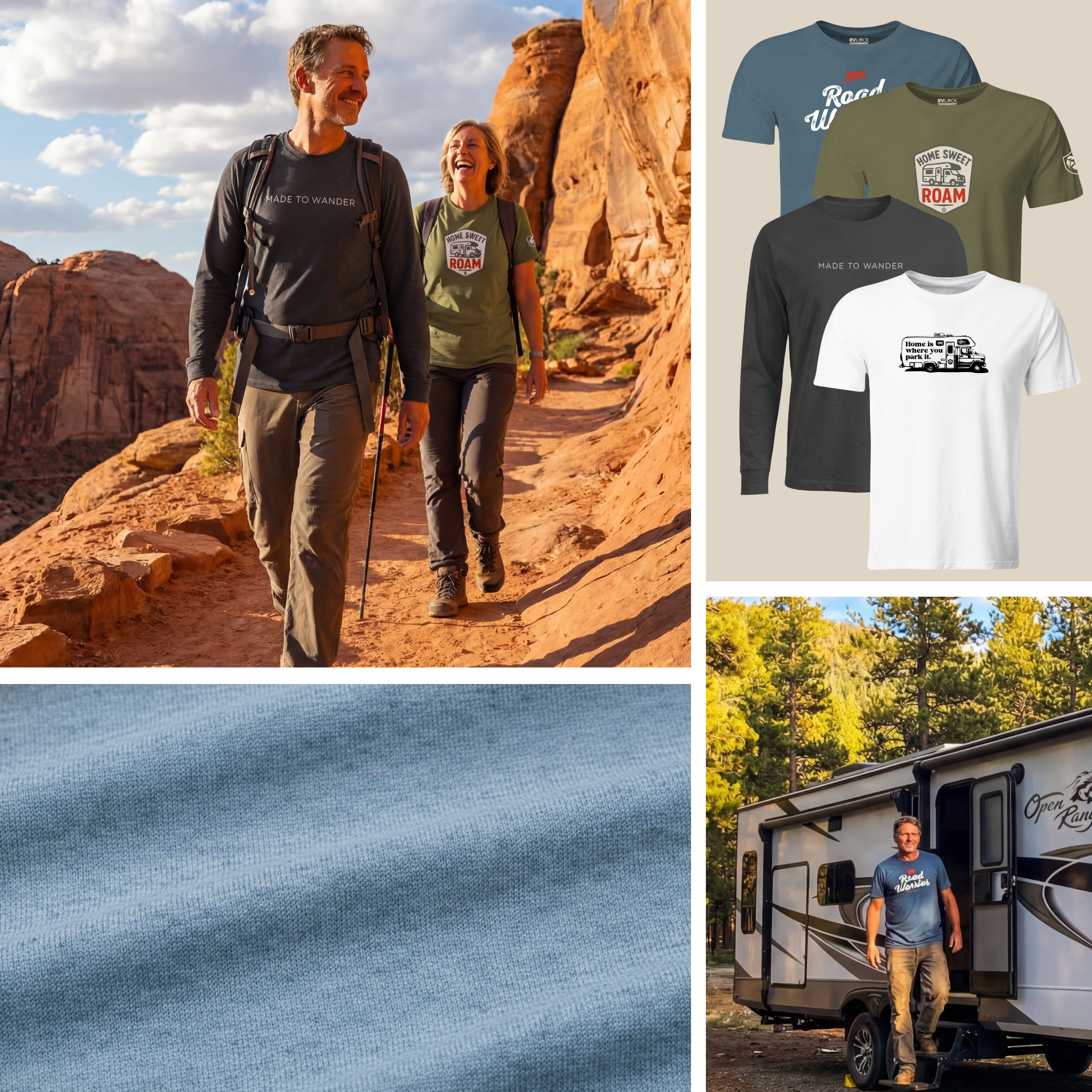 Built for life with long drives, changing climates, spontaneous stops, and slow mornings at the campground. Crafted from our premium, ultra-soft fabric, our clothing delivers the kind of comfort you notice the moment you put it on and appreciate even more after hours behind the wheel. A clean, versatile silhouette makes it easy to wear on its own or layer into your style, while durable construction ensures it keeps its shape and smooth feel trip after trip. Whether you’re logging highway miles or settling in for the night, you’ll reach for this gear again and again.