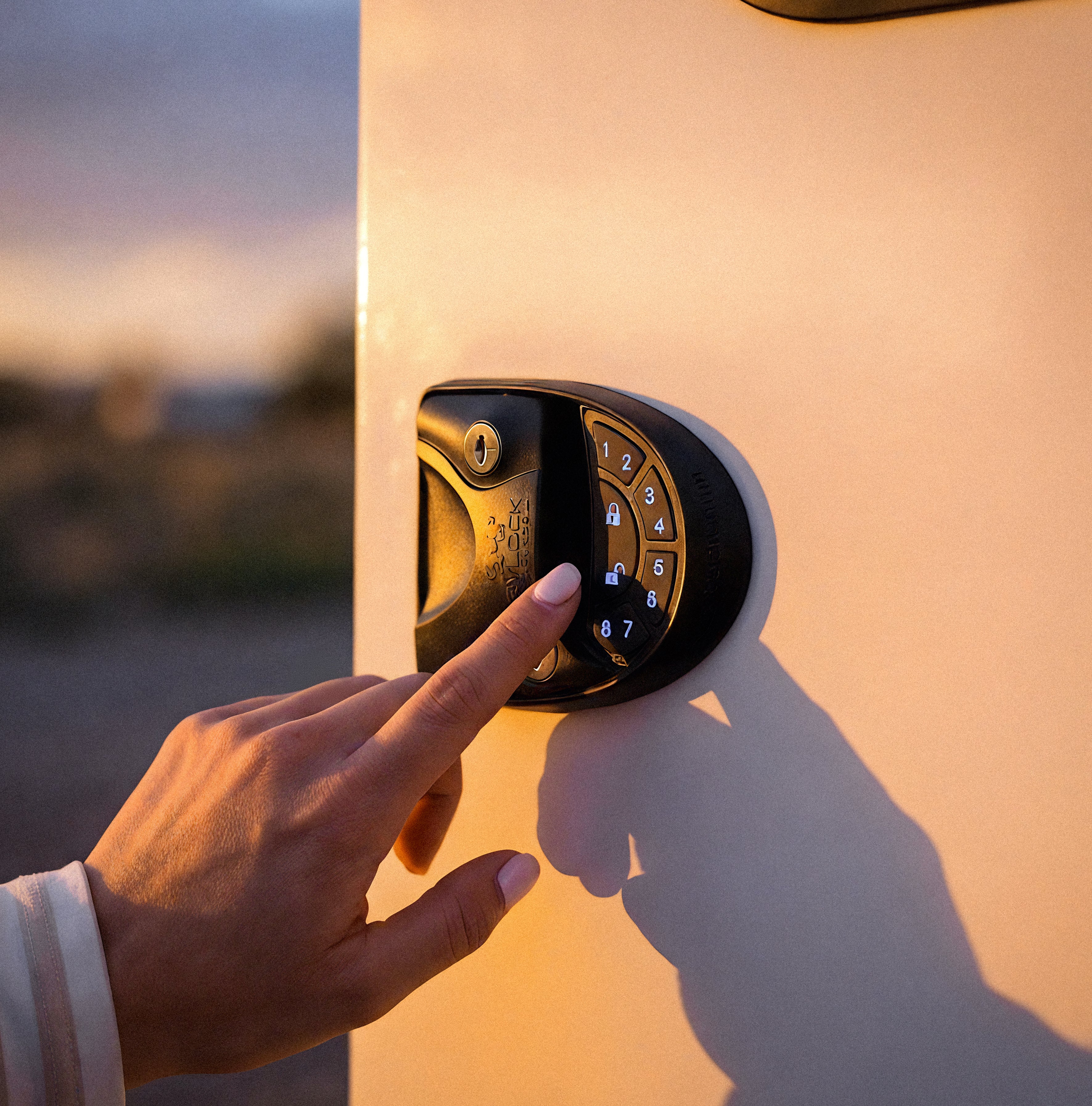 The RVLock V4 is the original, industry-leading, heavy-duty keyless security solution specifically engineered for travel trailers and fifth wheels. Featuring a full-metal construction and a premium durable keypad, the V4 is built to endure the harshest elements of the open road. This modern, teardrop-shaped handle offers an ergonomic grip and a weather-resistant, backlit keypad for effortless entry at any hour. Each unit comes with two 4-button remote fobs, allowing you to sync and control multiple doors and compartments with a single, industry-exclusive system.