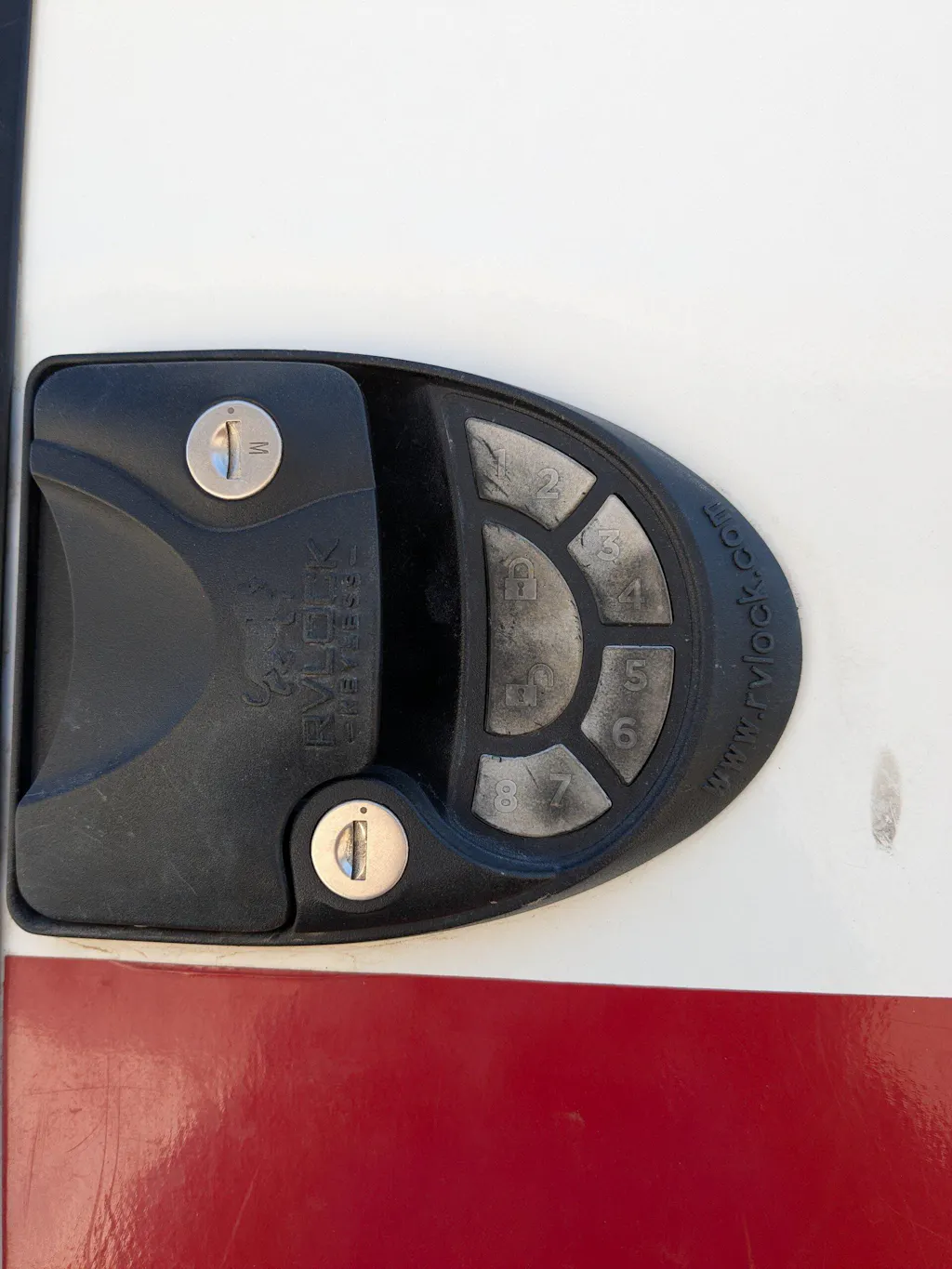 The RVLock Durō™ Keypad is a premium durable keypad membrane upgrade for existing RVLock products. The Durō Keypad is designed to withstand better the extreme weather conditions RV doors face as compared to older vinyl membranes.